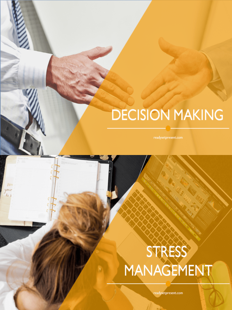 Stress Management (Modern) PowerPoint Presentation Content - 155 slides: Includes slides on understanding the dynamics of stress, quickly and effectively managing stress, symptoms of stress, identifying sources of stress, negative and positive effects of stress, the five step system to tackle stress, 6 strategies to minimize burn-out, from distress to eustress, specific problems and associated treatments, 15 ways to make work less stressful, how to's and more.