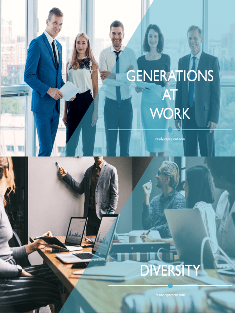 Generations at Work: Understanding and Influencing (Modern) PowerPoint Presentation Content - 152 slides: In the first slides you will learn the advantages of generational diversity in the workplace, and identify the impacts of generational differences. This presentation details the 4 generations in our workplace today covering: Social, Political, and Economic Influences, Familial Structure and Influence, Education, Values, Work Ethic, Preferred Leadership Approach, Communication Style, Motivational Buttons, How They Interact with Others, Preferred Approach to Feedback, View toward the Company, Work Vs. Personal Life, Desired Rewards, Financial Behaviors, Relationship with Technology, and Expectations. In addition, you will receive slides covering: future trends and statistics for the four generations; implication for recruiting and supervising the youngest generation - Millennials. It also contrasts the pros and cons of each generation and 6 important tips to more effectively communicate with each generation plus much more.
